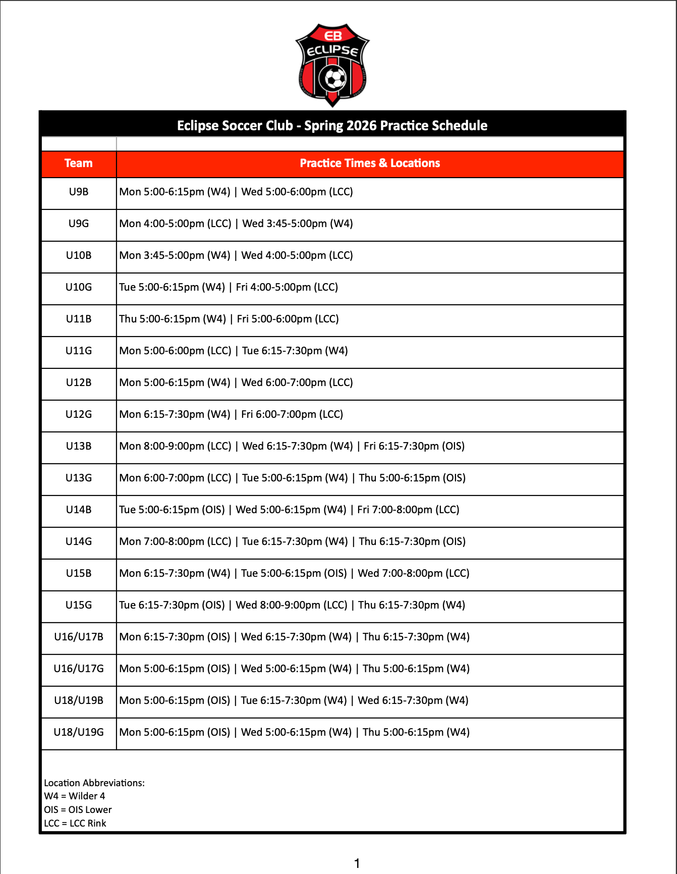 For 2025-26 Eclipse club players: Spring training is included in your club fees. All club players automatically continue training in the spring.